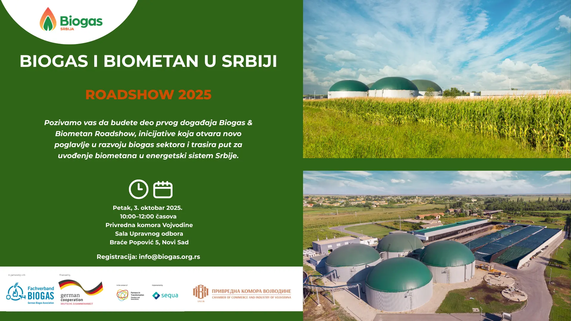The Serbian Biogas Association, in partnership with the Chamber of Commerce and Industry of Vojvodina and Fachverband Biogas e.V., and with the support of the German Federal Ministry for Economic Cooperation and Development (BMZ), is launching the initiative Biogas & Biomethane Roadshow 2025.