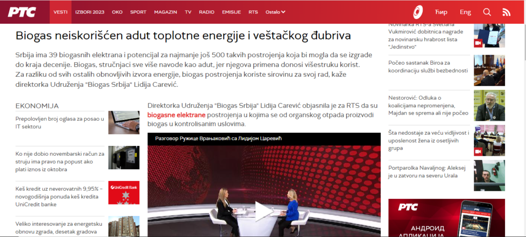 Interview with the manager of the Serbian Biogas Association, Lidija Carević, on the RTS portal.