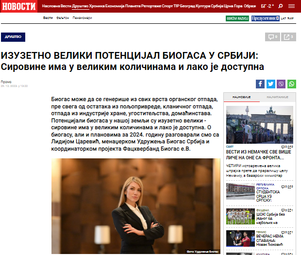 Interview with the Manager of the Serbian Biogas Association Lidija Carević in press Novosti