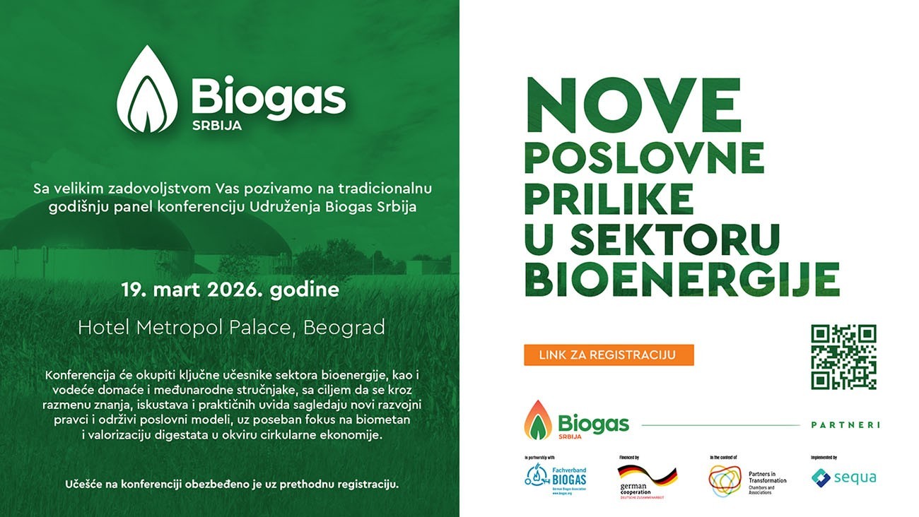 Udruženje Biogas Srbija ima zadovoljstvo da pozove članove, partnere i sve organizacije, kompanije i pojedince koji prate ili su zainteresovani za razvoj sektora bioenergije u Srbiji, na tradicionalnu godišnju konferenciju, koju i ove godine organizujemo u saradnji sa našim dugogodišnjim partnerima, Fachverband Biogas e.V.